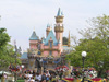 Sleeping Beauty's Castle from the end of Main Street. Note the statue of Walt Disney and Mickey Mouse. |
