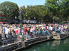 A number of these people were part of one long line waiting to get in to the newly revamped Pirates of the Caribbean ride. The line moved fairly quickly but there could well have been a 55 minute wait at this point. |